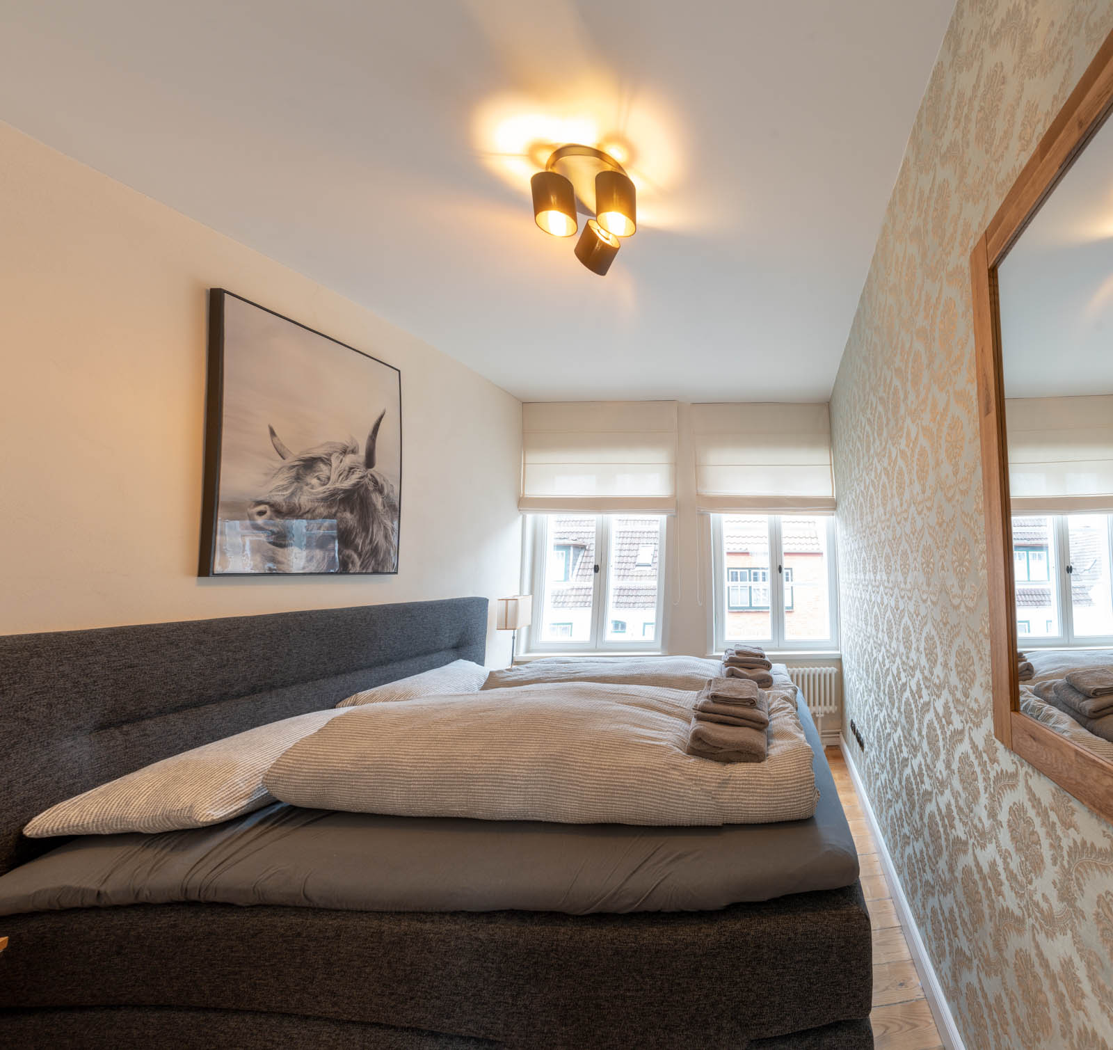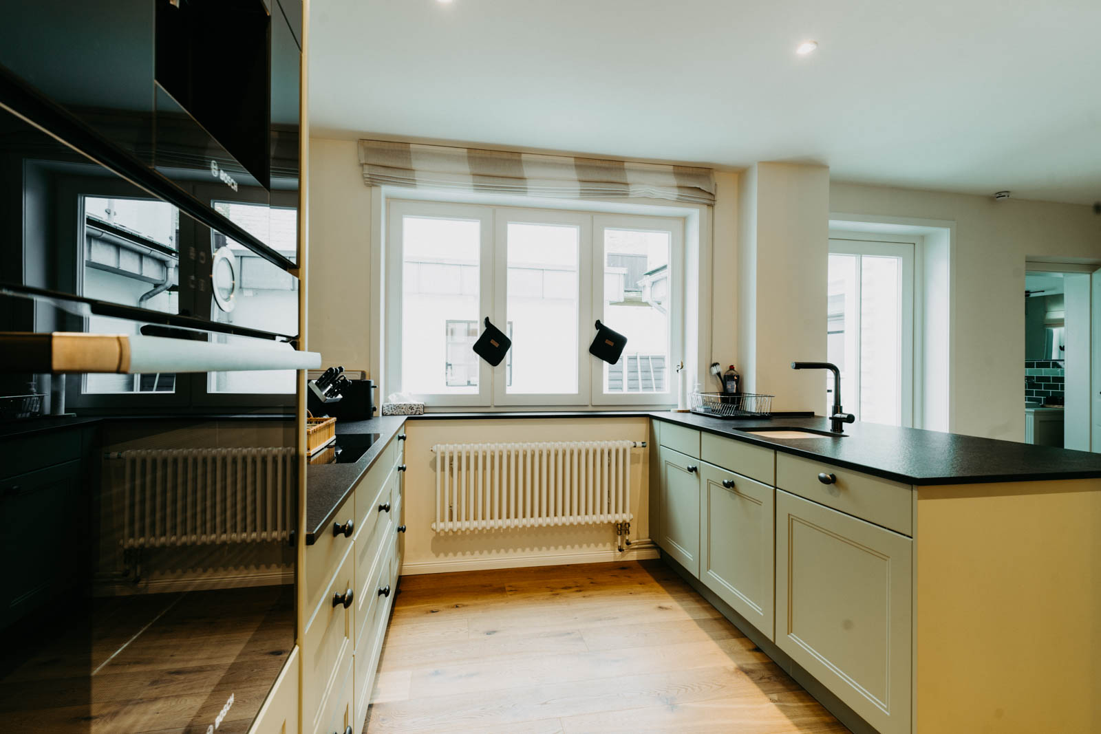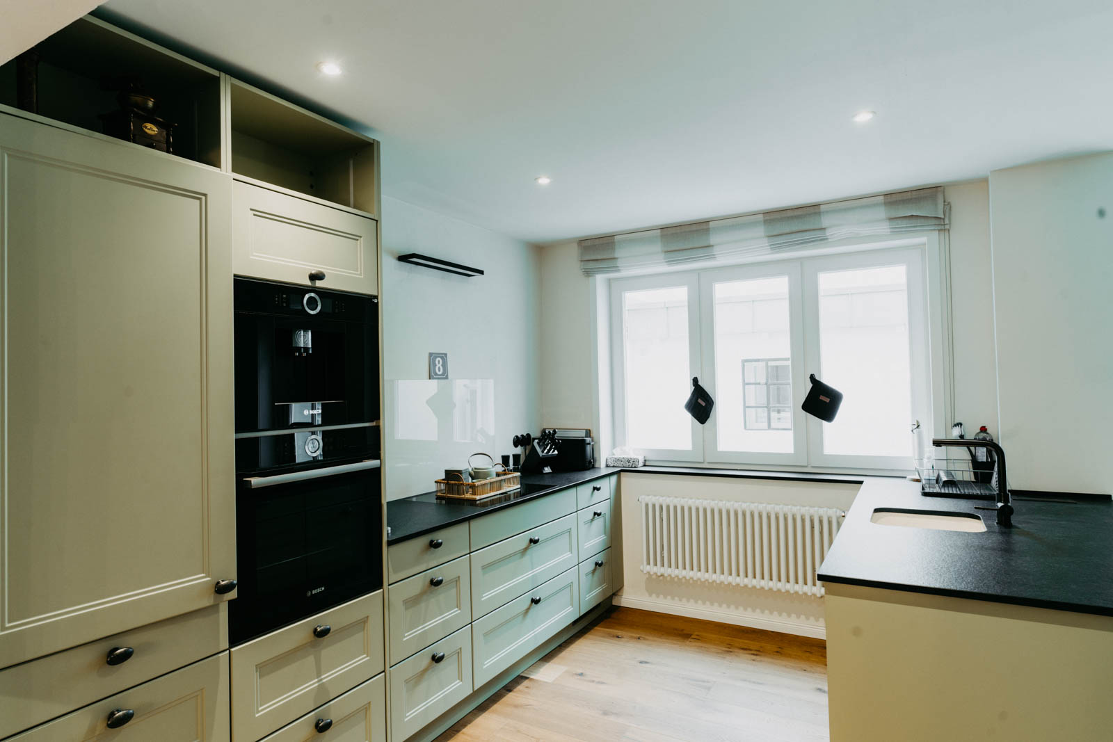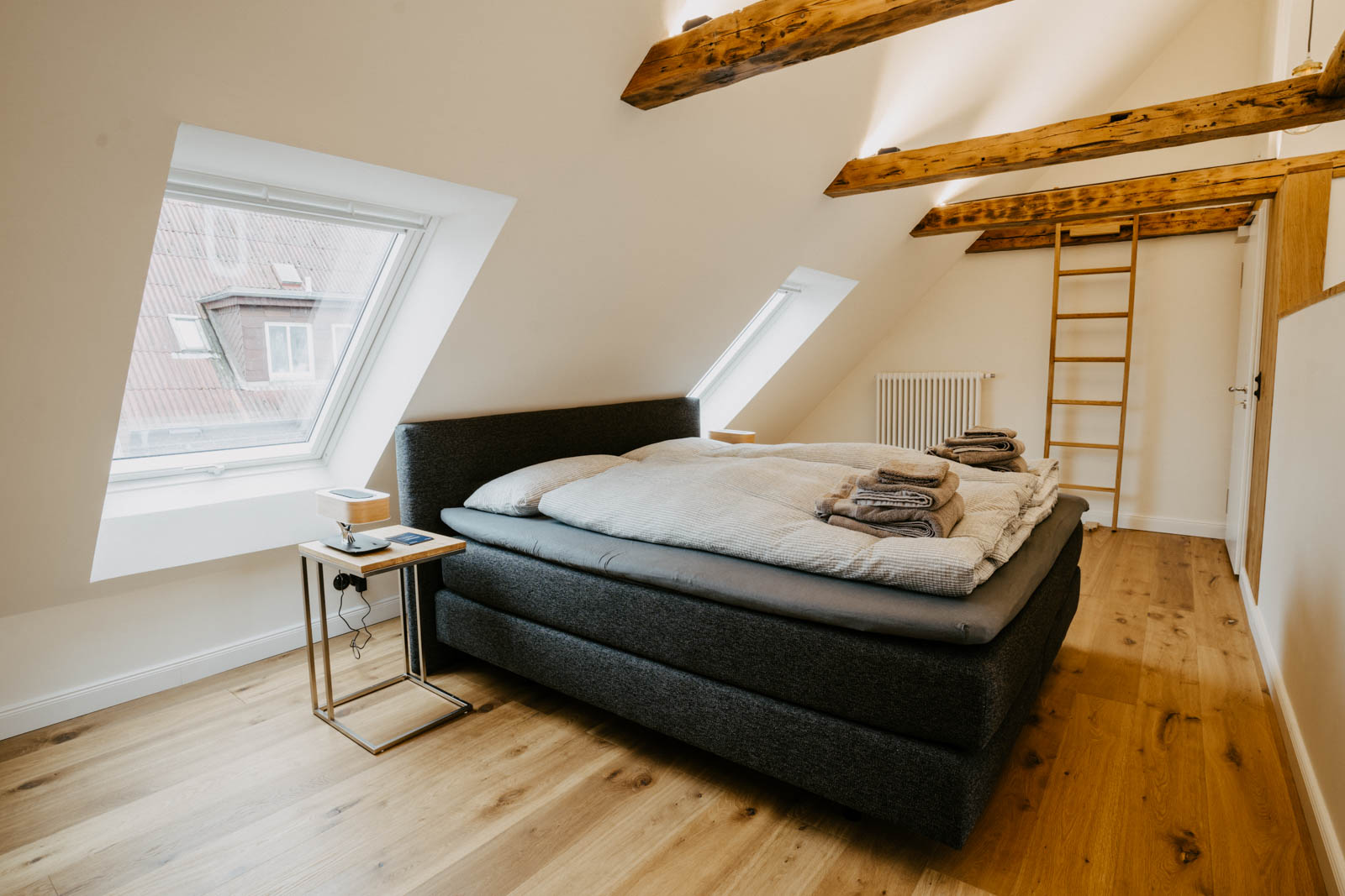 Das unter Denkmalschutz stehende Stadthaus wurde 1860 erstmalig urkundlich erwähnt. In den Jahren 2019 bis 2022 wurde es in Absprache mit dem Denkmalschutz kernsaniert, neu aufgeteilt und liebevoll eingerichtet. Die Fassade und die alten Balken im Haus wurden erhalten, altes Mauerwerk wieder freigelegt, neue Kastenfenster und Türen eingesetzt und der originäre Terrazoboden wieder zum glänzen gebracht.